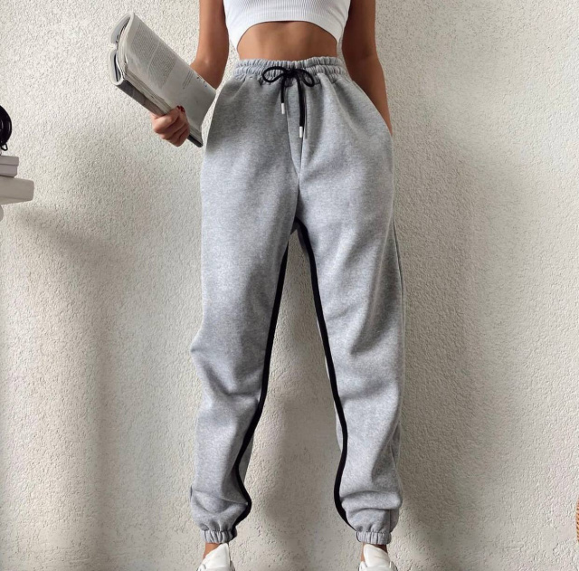 Женские спортивные штаны из трикотажа трехнитка на флисе. Посадка высокая, крой свободный, лампасы внутри штанины. Замеры в каруселе фото.